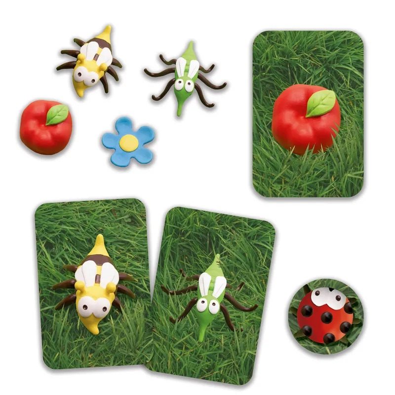 Innehåll: 48 kort (16 myggor, 16 bin, 16 äpplen), 7 figurer (4 bin, 1 mygga, 1 blomma, 1 äpple), 25 nyckelpigor, spelregler på tio språk inklusive svenska, 1 förvaringsask