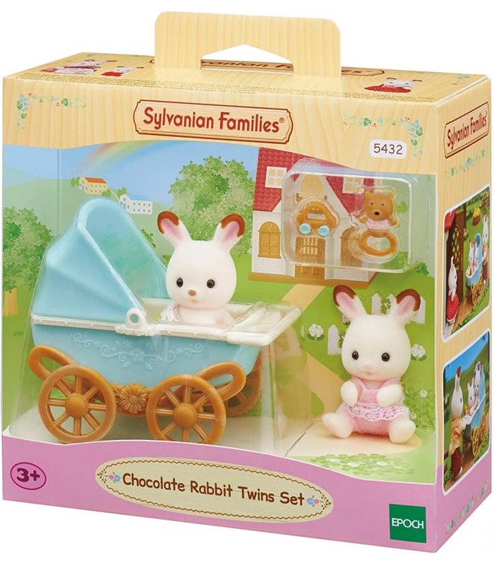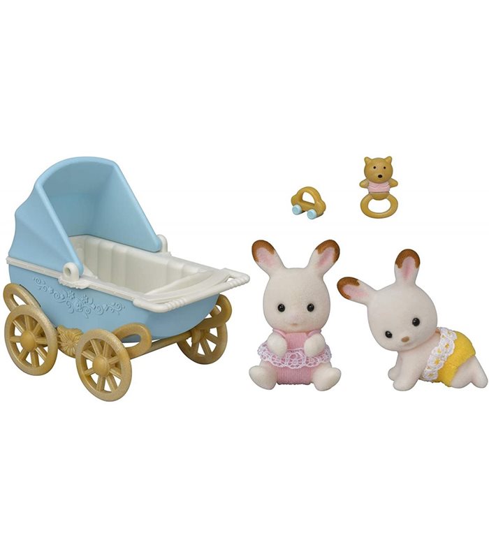 Sylvanian families Chocolate rabbit twins with pram