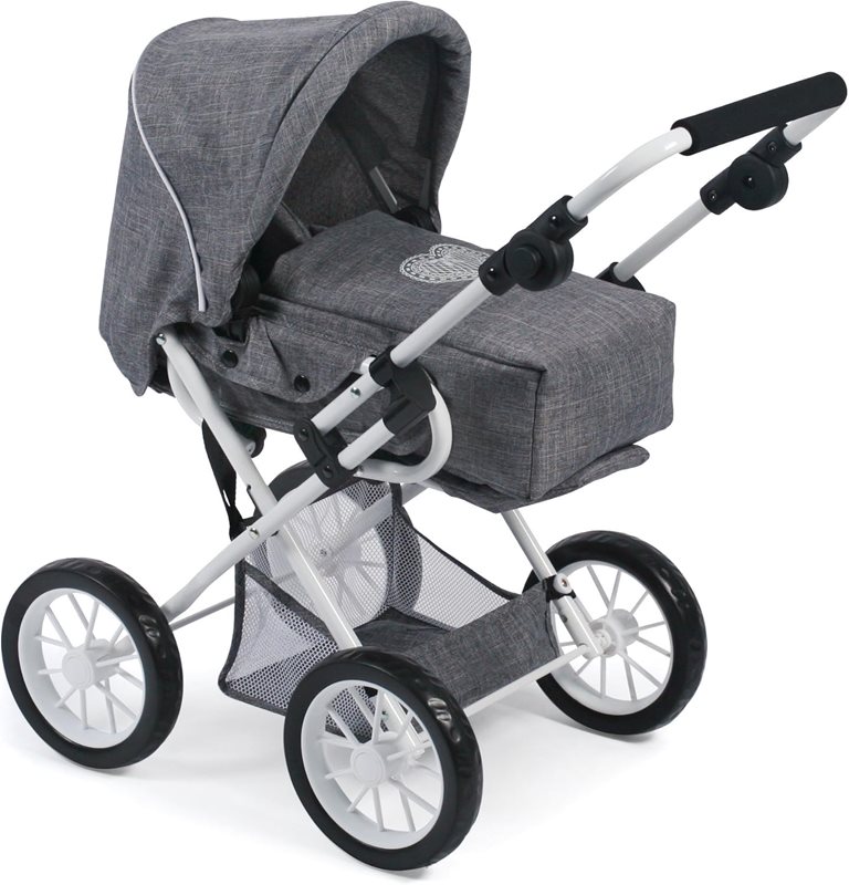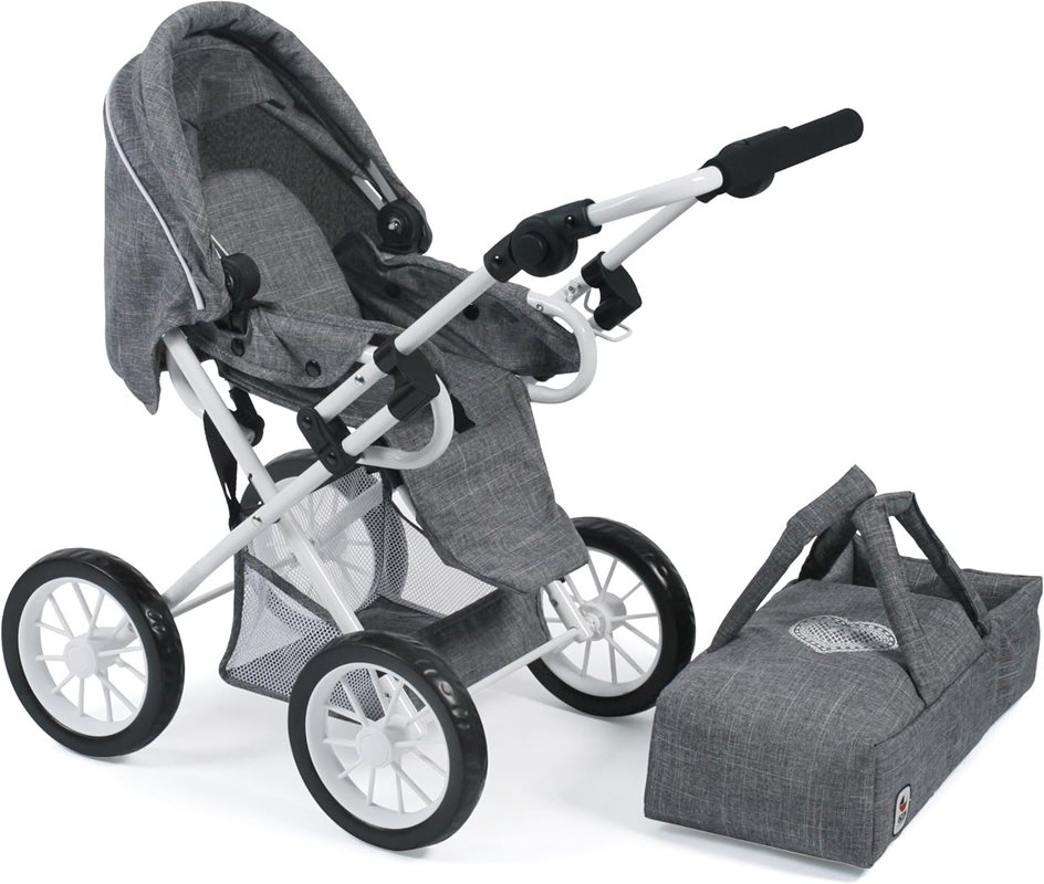 Fin dockvagn av kombimodell. Går att använda som liggvagn med den medföljande bärliften och även som sittvagn. Enkel att reglera mellan ligg- och sittläge. Reglerbar sufflett och varukorg. Vagnen går att fälla ihop.