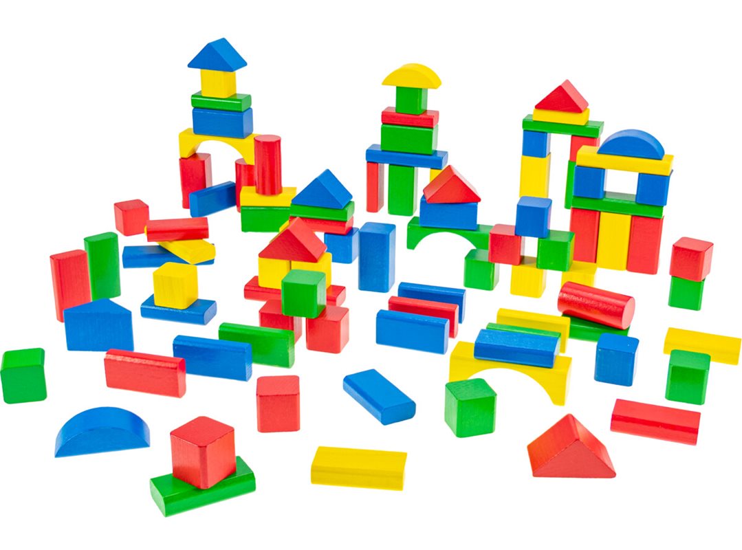 Färgglada träklossar ger oändlig glädje för barn över 1 år.
